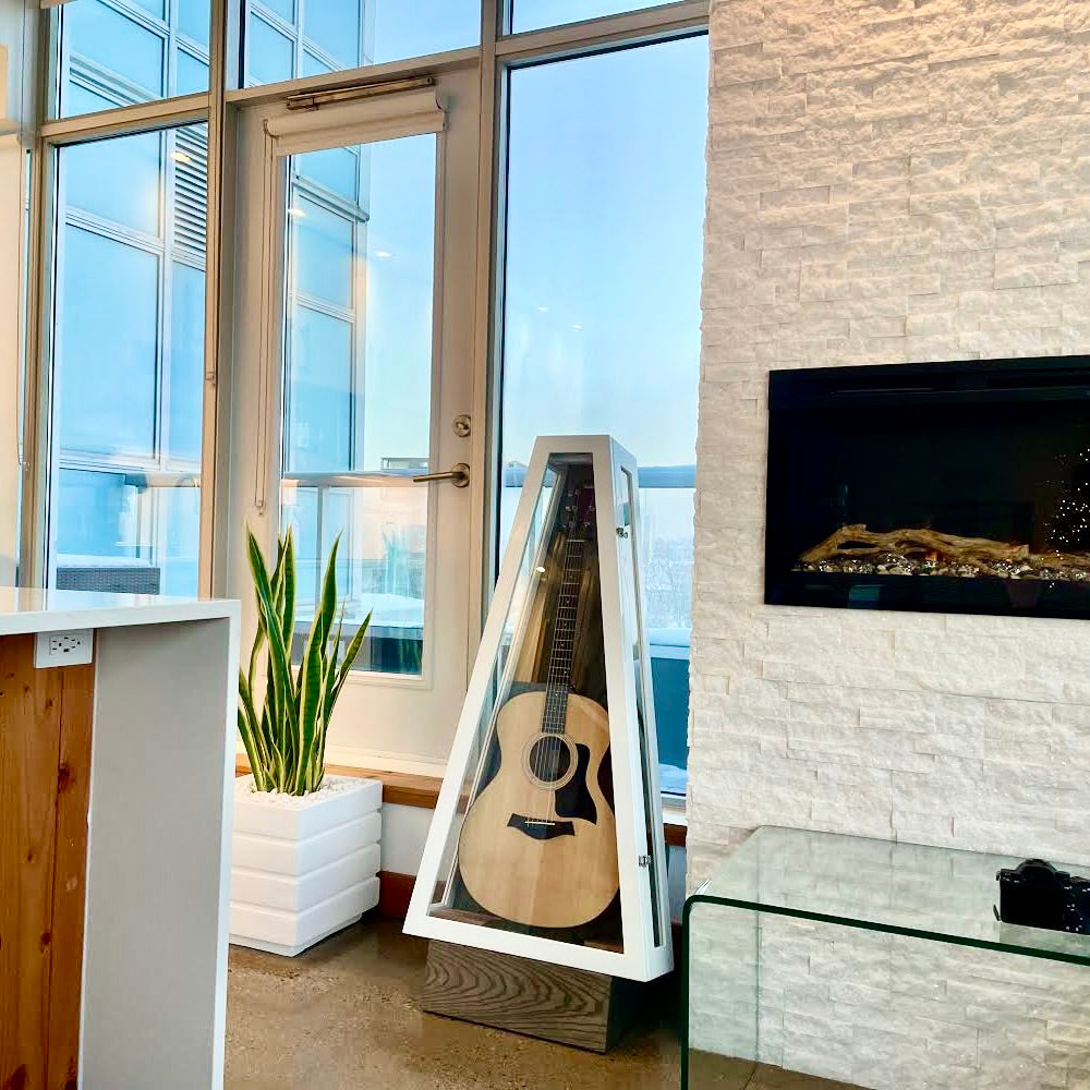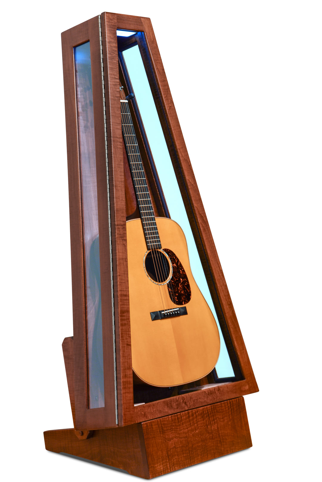Creatively combine a different wood in the back of the ClimaStand for a stunning backdrop for your instrument. Lighter or darker colored woods all look great for the back, and we recommend creating some contrast between the guitar top and the back.