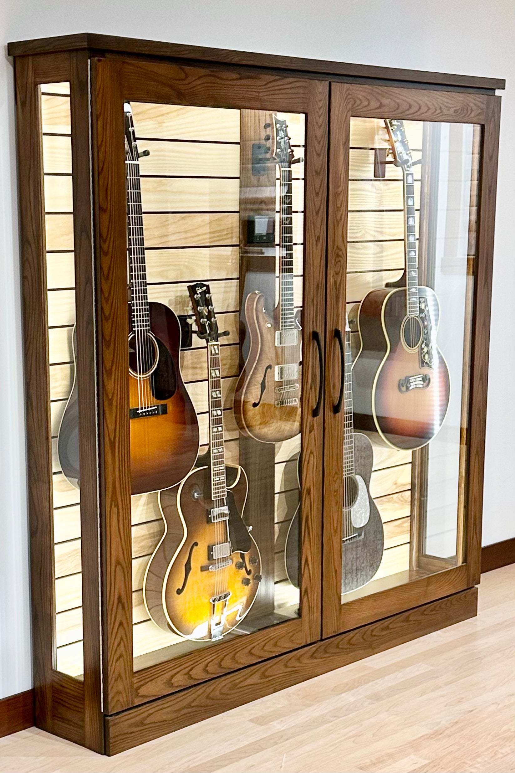 Experience low-maintenance, effective humidity control that ensures your instruments always sound their best. The exquisite display and security features allow you to admire the beauty of your instruments while keeping them safe from unwanted handling. Accessing your instruments is much easier than digging them out of hardshell cases, meaning you'll be more inclined to play whenever inspiration strikes.
