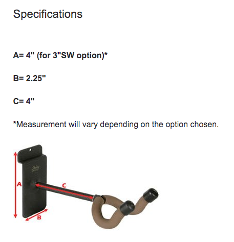 This slat wall fixed arm hanger has a 4" stem placing your instrument close to the slat wall and maximize your space to hang instruments.